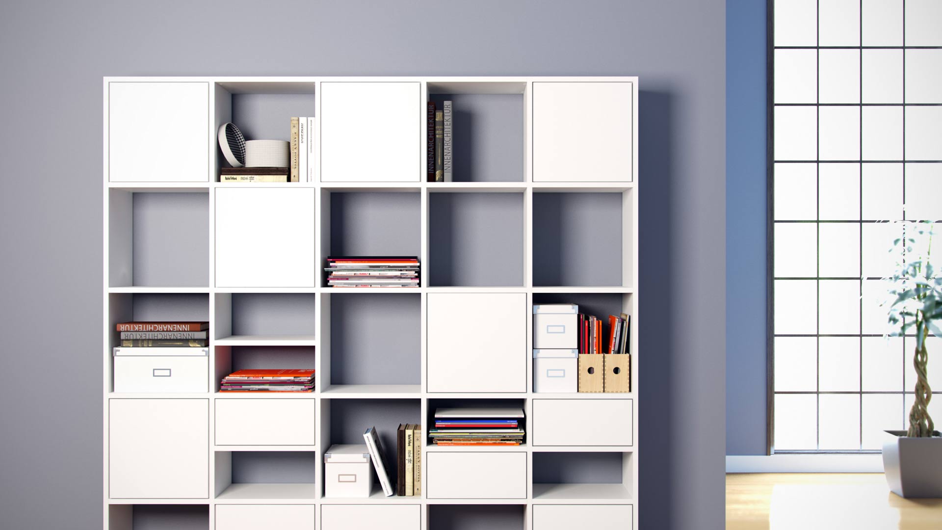 Individuelle Regalsysteme konzipiert für das heimische Wohnzimmer und den flexiblen Büroalltag - modular, mobil, multifunktional.
